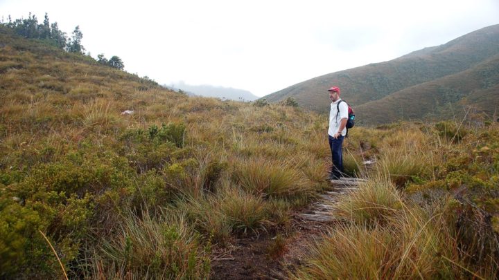 But Lake Judd lured me as a fish to the bait. Its vista from a previous trek on high to Mount Eliza tormented my brain. I splashed on as the drizzle arrived. Then, at one point, I emerged from a forested section and determined that since the trail ahead was so bad and was only going to get worse I should quit; thus I turned around and went back into the woods, but struggled to find the path. Eventually I emerged and continued on. Lord the track was terrible but I suffered in silence.
