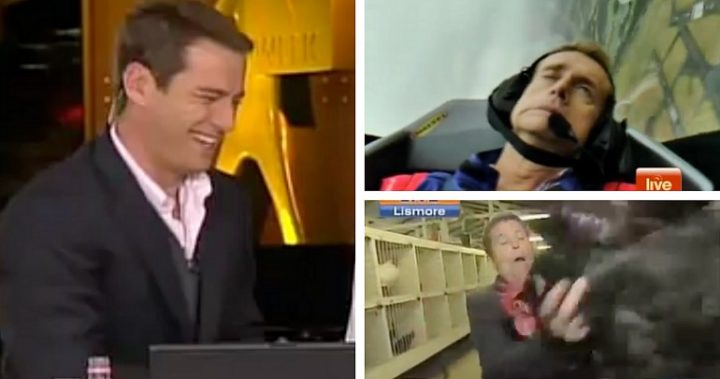 Pulling off a live cross from a flying plane is one thing, but managing to stay focused while the pilot is performing terrifying stunts is something else entirely – as Grant Denyer found out the hard way in 2013 on Sunrise.