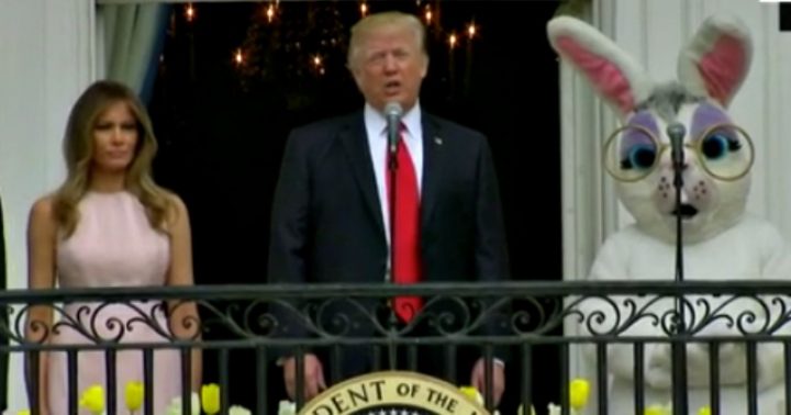 Joining the Easter Bunny on the White House balcony, both spoke to the crowds gathered below.
