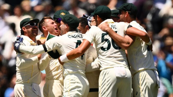 The left-armer also had Jofra Archer caught at deep backward point, before Scott Boland took Josh Tongue’s edge to end the match and kickstart the party.