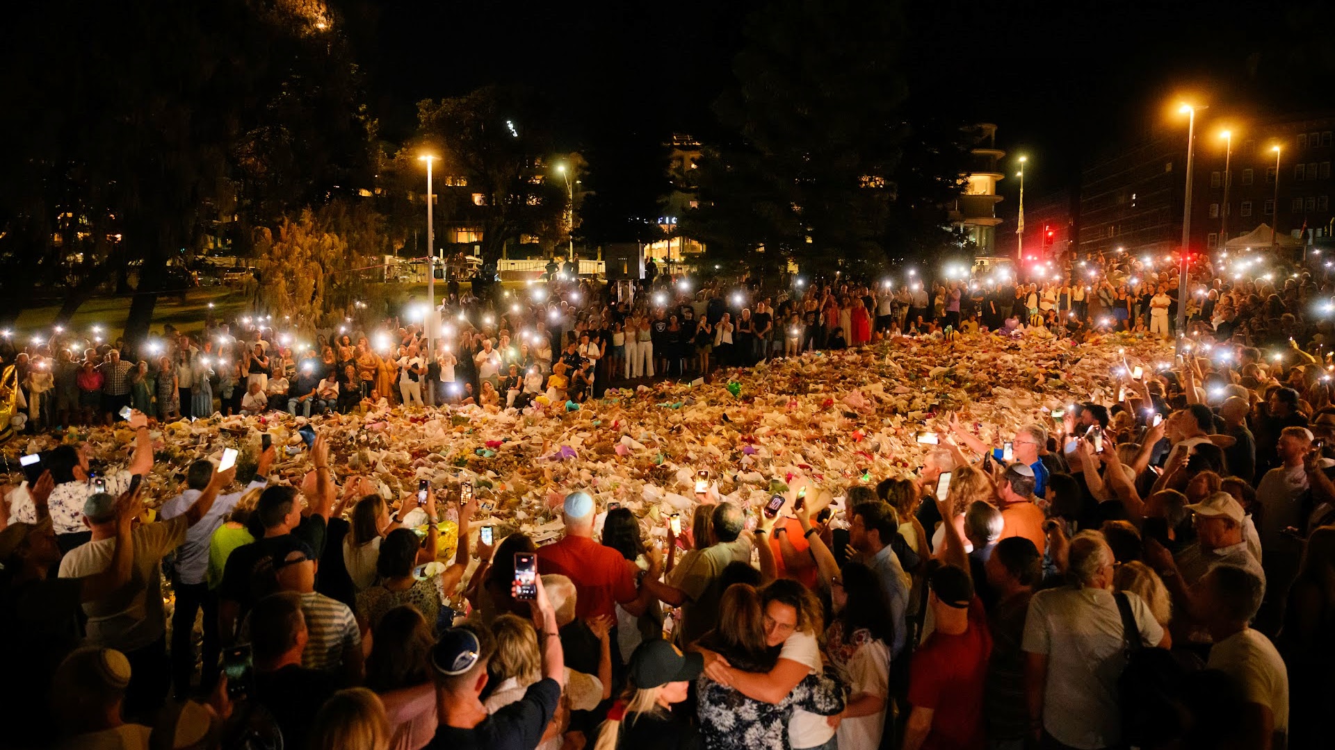 People turn on the flashlight on their phone during the vigil at Bondi Pavilion at Bondi Beach on December 20, 2025 in Sydney, Australia. Life slowly returned to normal at Bondi Beach, with people from all walks of life still paying respects and tributes as funerals for the victims continued across the city. Police say at least 16 people, including one suspected gunman, were killed and more than 40 others injured when two attackers opened fire near a Hanukkah celebration at the world-famous Bondi Beach, in what authorities have declared a terrorist incident. The government is moving to tighten gun laws across the country. (Photo by George Chan/Getty Images)