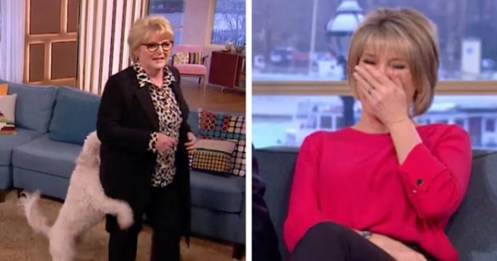 At first, it looked as though the interview went well. Jack sat quietly beside his owner as she talked about her new show with hosts Eamonn Holmes and Ruth Langsford. It wasn’t until the interview was finishing up that things took a hilarious turn for the worse.