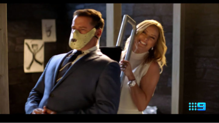 Allison, holding up a Hannibal Lecter mask, continues: “This time Karl, things are going to be different … Everyone’s watching Karl, are you going to behave?” To which Karl replies: “Well, you’re just going to have to … trust me.”