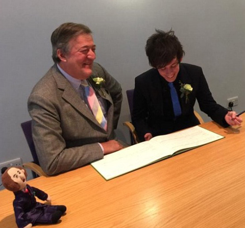 The marriage was announced via Stephen’s Twitter with a photo of he and Elliot signing a marriage register along with the caption: “Gosh. @ElliotGSpencer and I go into a room as two people, sign a book and leave as one. Amazing”.