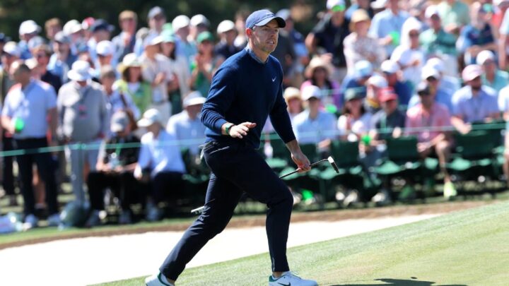 The well-fancied Bryson DeChambeau, coming off successive LIV Golf wins and paired with McIlroy for last year’s final round, needed three attempts to escape a greenside bunker at 11 en route to a triple-bogey seven and a four-over 76.