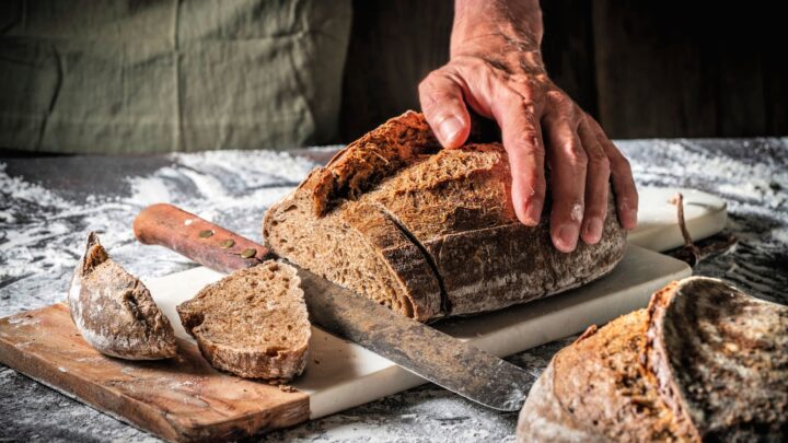 If you’ve bought a crusty loaf and are slicing it as needed, place the cut side down on a wooden board or inside your bread bag. The crust acts as a natural barrier, protecting the soft interior from air exposure. This simple trick, slows moisture loss, maintains texture and helps the loaf hold its shape.