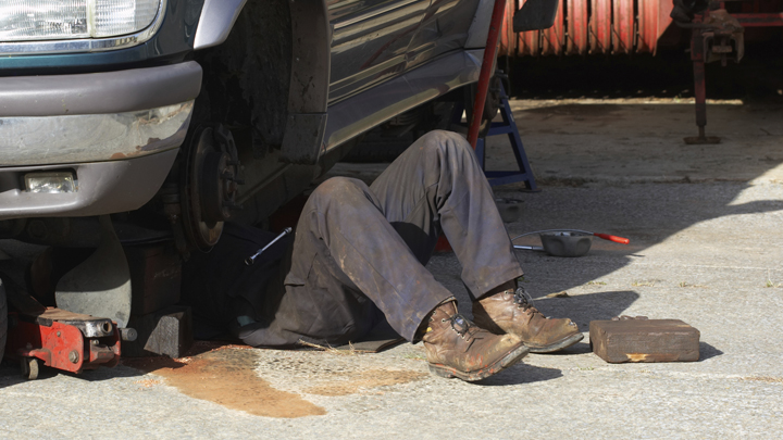 The husband told his wife to go ahead and do the shopping while he fixed the car. Sometime later, the wife returned to find a small knot of tittering people surrounding the car.