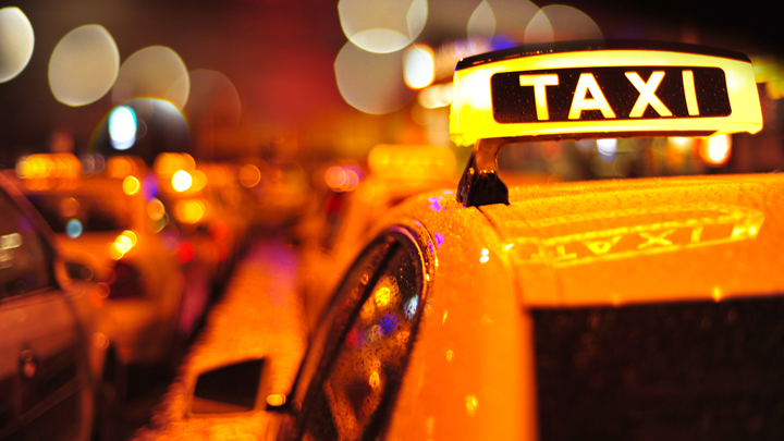 A taxi passenger tapped the driver on the shoulder to ask him a question.