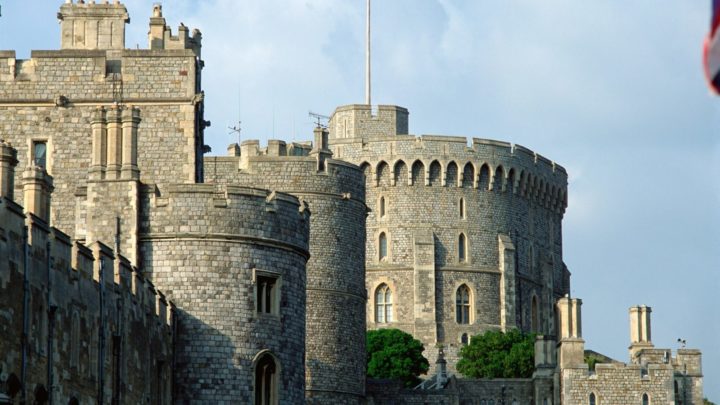 A group of tourists arrived at Windsor Castle, which is directly in the flight path of Heathrow International Airport.