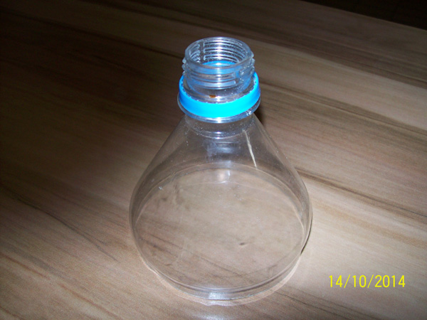 Simply take an ordinary one and a half litre PET plastic soft drink bottle, cut the top off, and VOILA! a funnel fit for the job.
