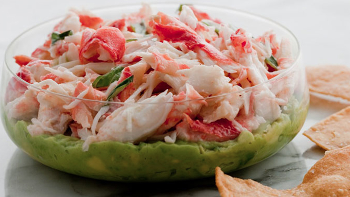 Avocado and fresh crab dip with crispy tortilla chips - Starts at 60
