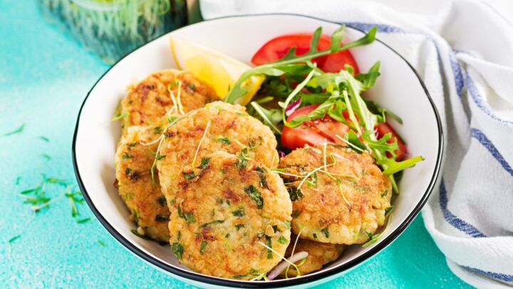 Spray patties with oil. Bake for 20 minutes or until golden. Serve patties with a garden salad and some tomato sauce.