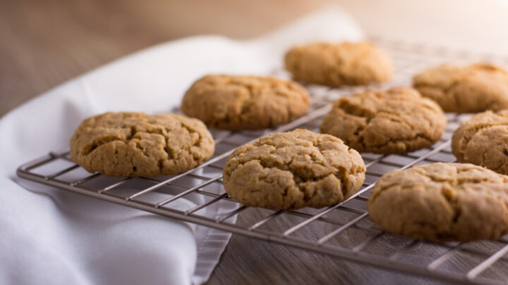- Roll 2 level tablespoons of mixture into 16 balls. Place on prepared trays – allowing room for spreading. Using the palm of your hand, slightly flatten to form a 5.5cm round. Bake for 12-14 minutes, swapping trays after 10 minutes, or until lightly golden. Stand cookies on trays for 5 minutes then transfer to a wire rack to cool.