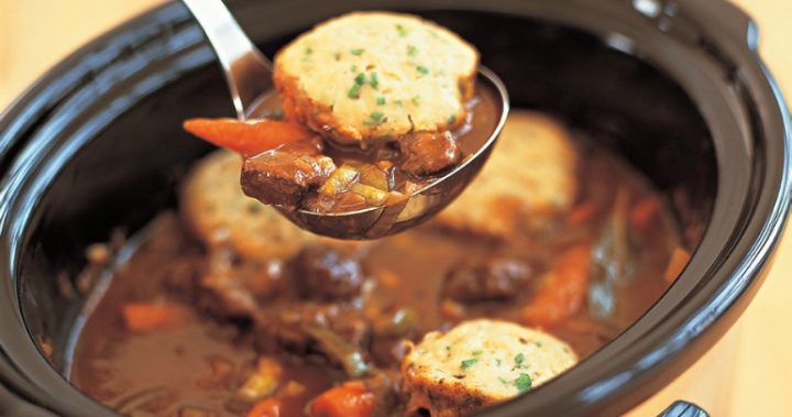 When it comes to comfort cooking, it doesn’t get much better than this. This hearty stew is just the thing to warm you up and satisfy your hunger, with a deliciously rich sauce, plenty of veggies, tender beef and amazing little dumplings on top. It couldn’t be easier either with everything thrown into the slow cooker and left to work its magic over the next few hours. Dish up a big serve in a bowl and place a few dumplings on top to mop up the sauce at the bottom of the bowl. Enjoy!