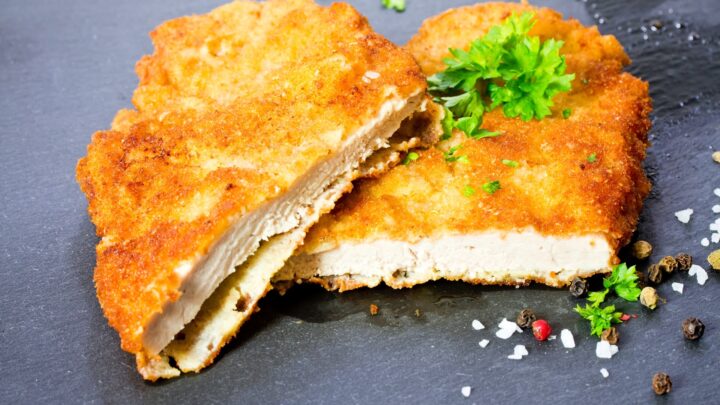 Pork schnitzel purists will tell you it’s the original, the only real schnitzel. Pork stays juicy, has more flavour, and rewards you with that glorious crackle-adjacent crunch when done right.