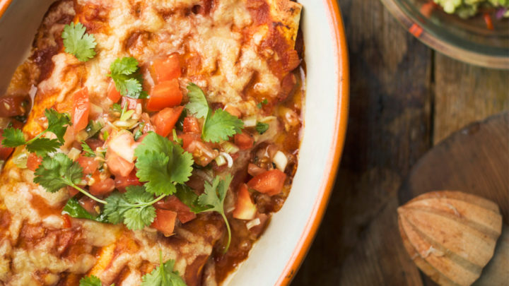 If you feel like something with a whole lot of flavour for dinner tonight, then you can’t go past these cheesy Mexican-inspired enchiladas! For something a bit different, this chicken and mushroom version defies the usual ingredients but still works so deliciously well!