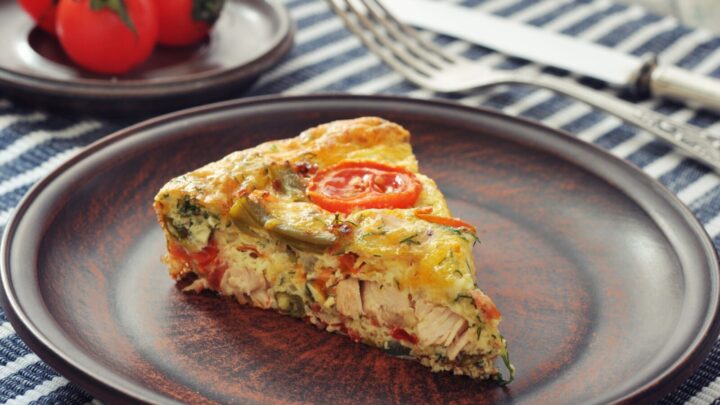 This is a delicious and easy frittata. I used the leftovers from a barbecue chicken and tossed in some tasty vege.