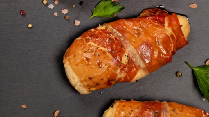 Prosciutto-wrapped chicken has that perfect balance – it looks elegant on the plate, delivers big flavour, and is surprisingly simple to pull together. The salty, crisp prosciutto keeps the chicken juicy, while golden roasted potatoes round it out into a complete, comforting meal.