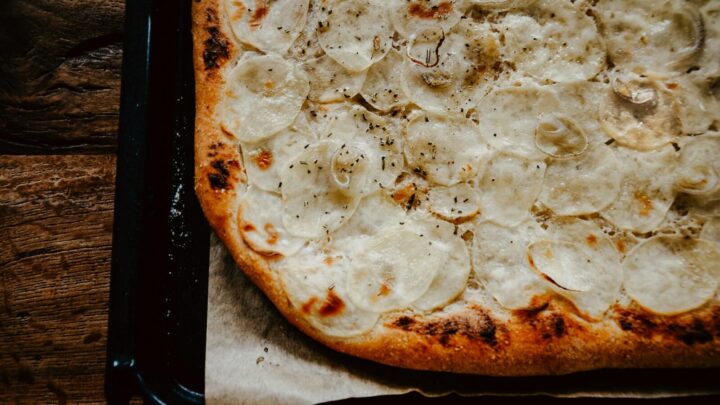 You might be thinking that potatoes on pizza are strange – we thought so too! That is until we tried it. This recipe is divine. Plus, this is an easy and wallet-friendly pizza to throw together.