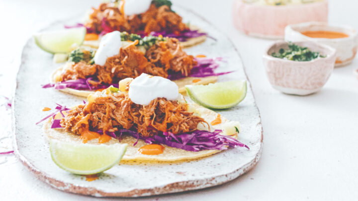 Test it yourself! The meaty secret lies in two special ingredients: jackfruit and liquid smoke. After a few hours cooking, the jackfruit shreds to the stringy texture of pulled meat, while the liquid smoke makes it taste like it’s been cooked low and slow over hot coals for days. The hardest part about this recipe is finding those two ingredients — the actual method couldn’t be any simpler if you tried. If you’re planning your Mexican banquet in advance, the easiest place to get those ingredients is online.