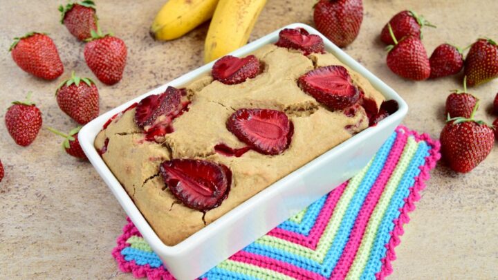 Strawberry Banana Bread is a blend of fresh, juicy strawberries mixed with bananas that make this bread soft and moist in every slice. This is quick and easy bread that’s a sure win for the whole family.