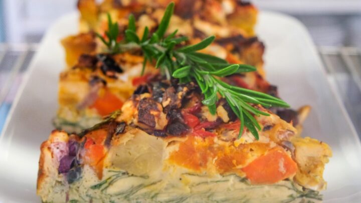 Here’s another recipe to use up any if you find yourself with leftover roast vegetables. This roast vegetable frittata is so easy to prepare and it tastes delicious!