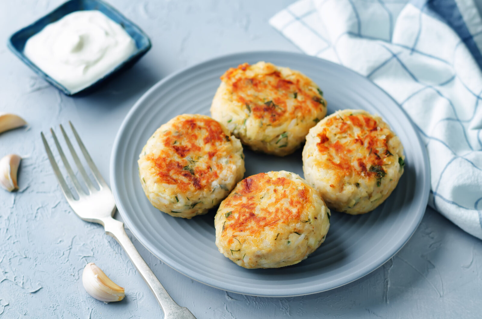 Heat a drizzle of olive oil in a medium pan over medium heat. Press a heaped tablespoon-full of the mixture into a patty shape and add to pan. Cook 8-10 at a time for about 5-6 minutes on the first side. Flip and cook an additional 4-5 minutes, or until golden brown and cooked through.