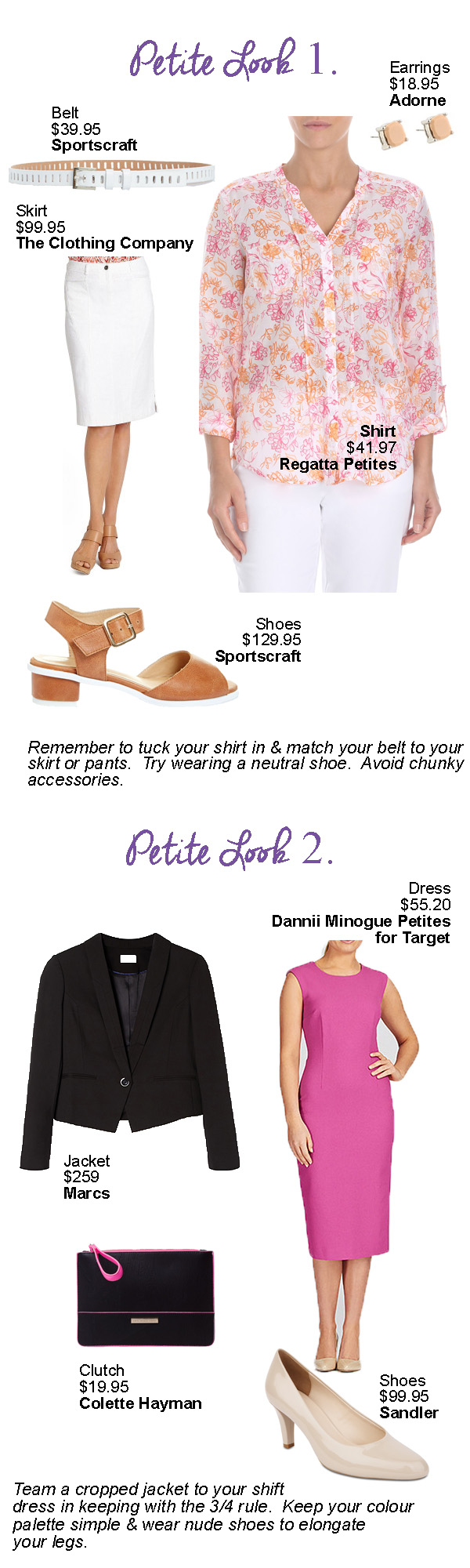 David Jones – the following brands are available in petite sizes – Yarra Trail, Lorelle, The Clothing Company