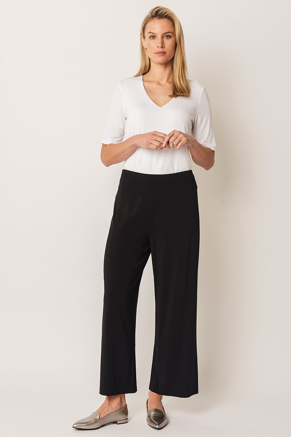 And what wardrobe is complete without a pair of go-everywhere black trousers? This is where the 7/8 Palazzo High Twist Pant (below) come in. The elastic waist and relaxed fit ensure theyβre comfortable and flattering Β and the seven-eighths length means they can be worn with knee-high boots, flats or heels, depending on how dressy you need to be.