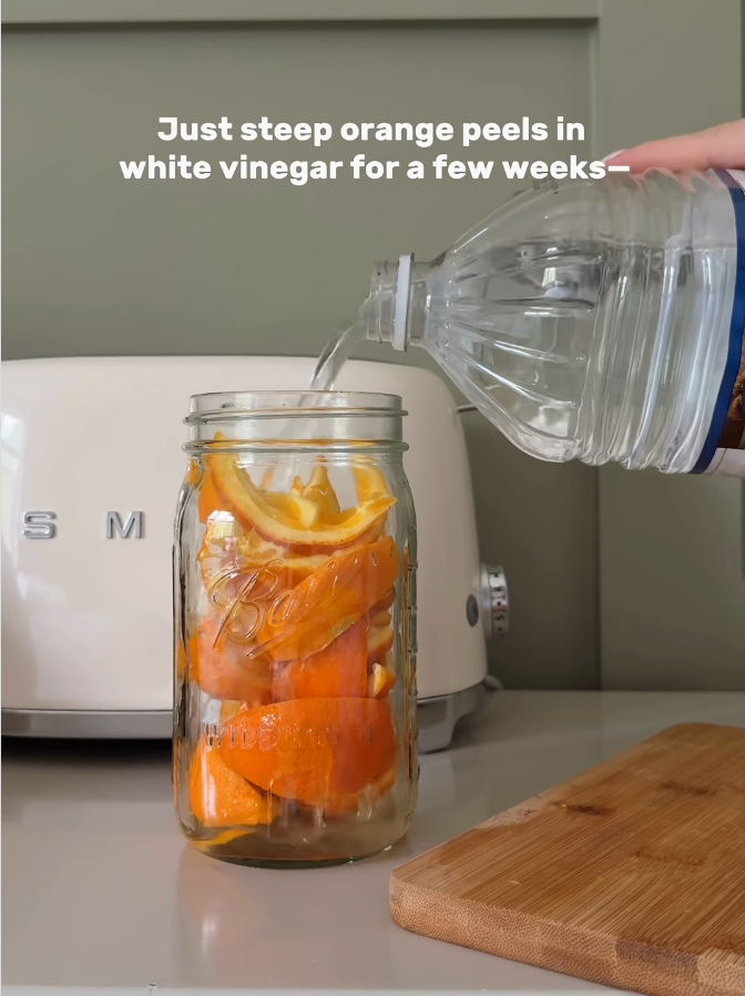 To make Hunt’s solution, steep half a cup of orange peels in a large jar of white vinegar for two to three weeks, then strain and use half a cup per laundry load in either the rinse cycle or fabric softener compartment of your washing machine.