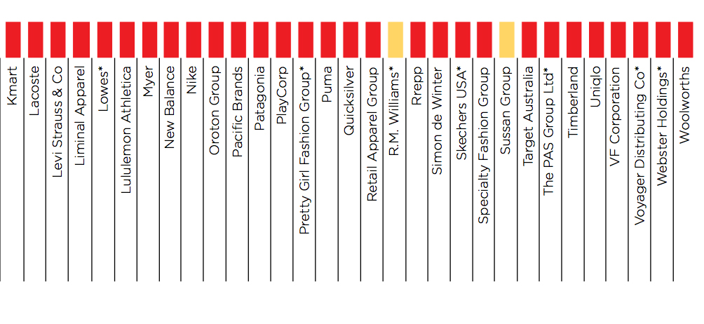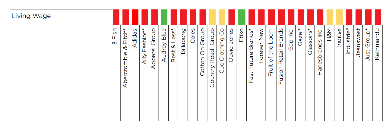 A number of Australian brands have been named as providing workers with “good practice” in some of the observed areas, including Country Road, and their associated brands of Mimco, Trenery and Witchery, and their associated brands Sportsgirl, Sussan and Suzanne Grae. Both suppliers pay their manufacturing workers in China approximately 150 per cent above the legal minimum wage, which the report says is a good step towards paying a good living wage.