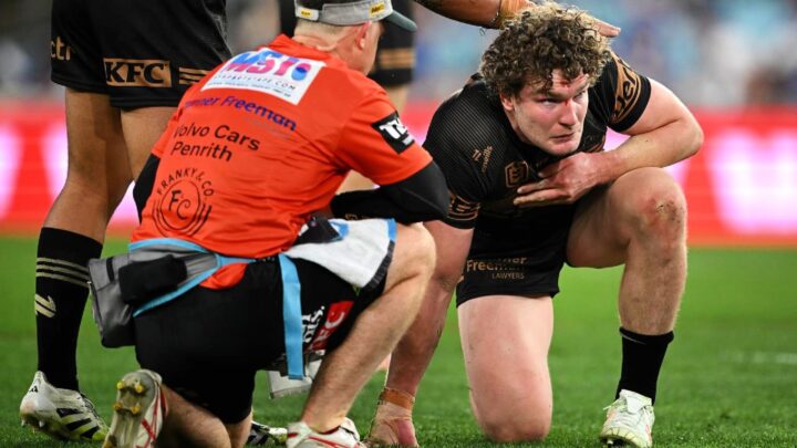 Martin left the field and went up the tunnel where he again appeared in significant pain, but was later seen laughing as he returned to Penrith’s bench.