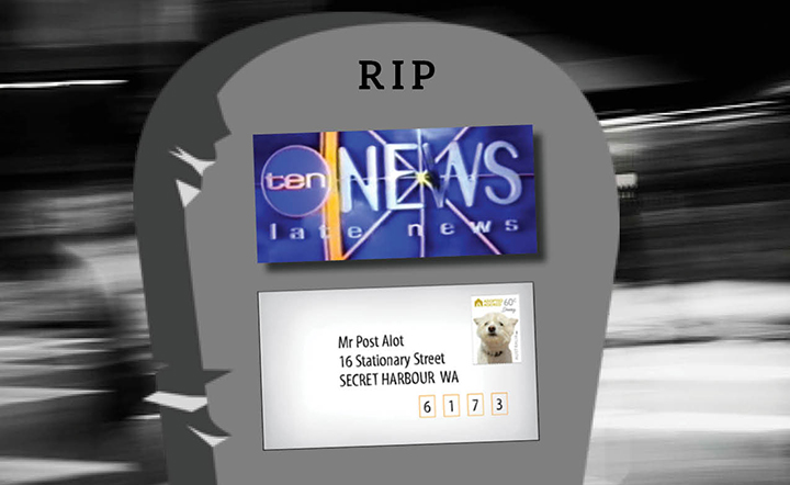 And as for watching TV with ads on it… Well, I am a prolific fast-forwarder. I tape all my favourite shows (only one of which is on Channel 10) then I watch them back at my own convenience, without the ads. And I consume all my news online, on digital media. Do you? No wonder mail and TV news is struggling!