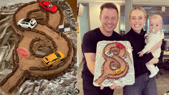 The 34-year-old headed to the kitchen this week to whip up a treat for her friend and fellow presenter Ben Fordham – and the results are pretty impressive! The racing track cake is made into the shape of an eight, and topped with delicious chocolate icing and of course some matchbox cars.