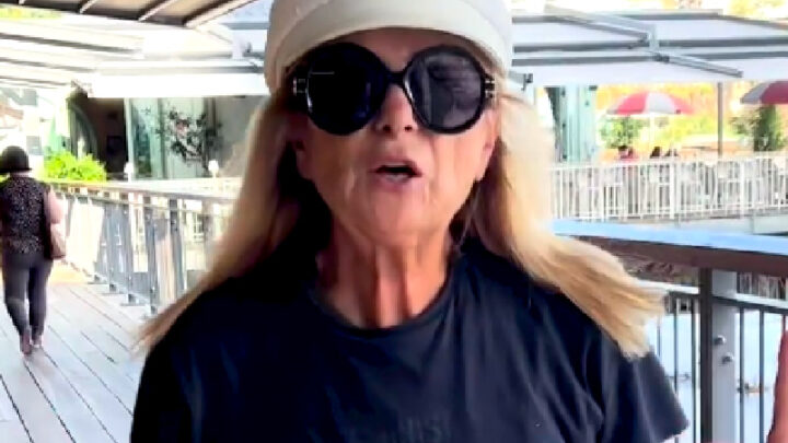 Russo wears activewear, a baker’s cap and large sunglasses, and a Yves Saint Laurent bum bag, as she says that the best way to get through the devastation of the floods is to exercise. The frankly shocking videos best speak for themselves.