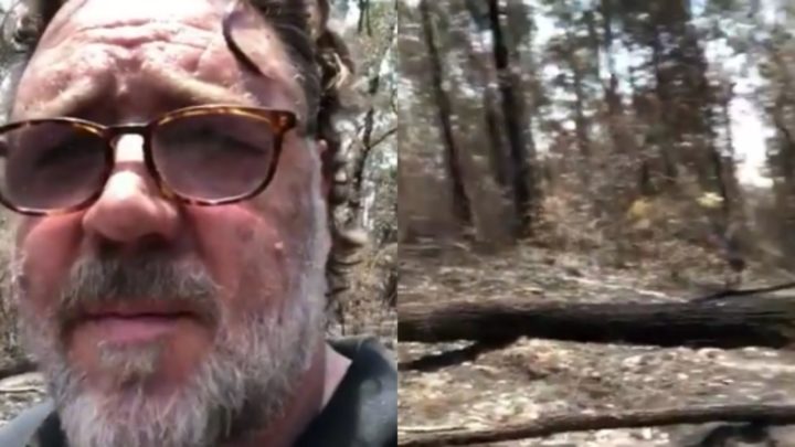 Crowe then turns the camera around to show the scorched bushland. “Look at this place, mate,” he said “Absolutely f***ing smashed.”