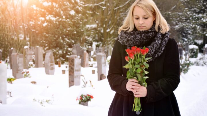 The priest stares at her and says, “Good God, have some decency. This is your mother’s funeral!”