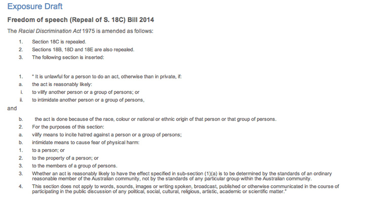 The main change proposed was to take out clauses making “to insult, to humiliate or to offend” unlawful however retaining “to intimidate” and including “to vilify” as unlawful acts.