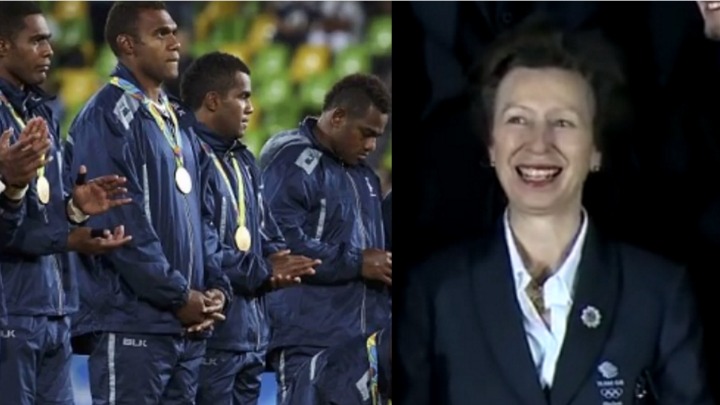 While the British team remained standing as Britain’s Princess Anne gifted them their silver medals for winning second place at the Rugby Sevens World Series award ceremony, the Fiji rugby players displayed their deepest respect for the royalty in a different way.