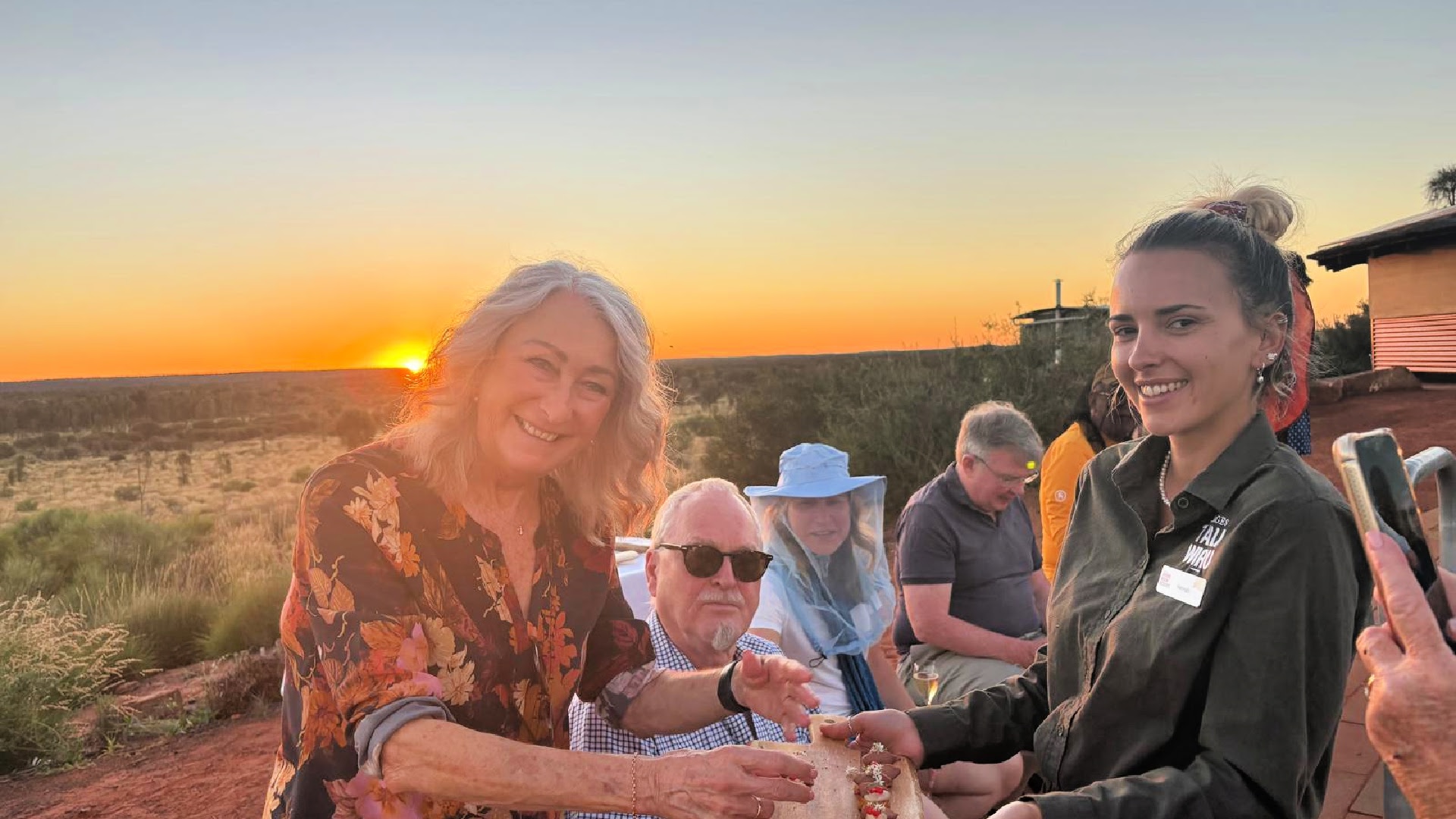 That feeling began on our very first evening – sitting with our picnic baskets out in the desert, we watched the sun drop behind Uluṟu and the lights of Wintjiri Wiṟu unfold before us. There we were, passing around beautiful food, and watching and listening to stories that’ve been passed down over thousands of years.