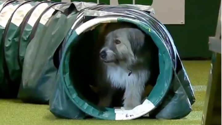 With a huge smile on his face, the pooch, who works as a therapy dog, wandered around happily, even stopping to take a rest inside the tunnel, instead of speeding through like its fellow canines.