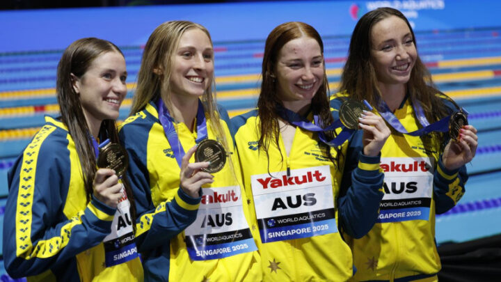 At the Singapore worlds, Australia top the medal tally with three nights of competition remaining with five golds, one more than the United States.