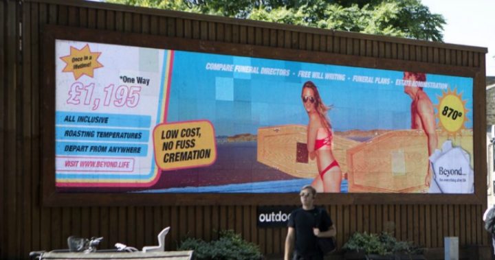 Beyond, the company behind the adverts, said the whole point of the campaign was to break the taboo around death, and insisted the images weren’t cruel or mocking people losing their lives. The four images used models in a range of different, everyday situations, rather than the more popular images of an elderly couple discussing their funeral plans.