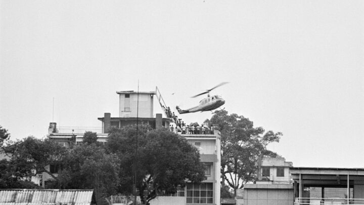 On April 30, 1975, Communist forces gained control of Saigon and South Vietnamese President Duong Van Minh – who had only been in office for two days – surrendered unconditionally, marking the end of the Vietnam War. The American helicopters had already left. The famous photograph of a CIA helicopter on a Saigon rooftop, people climbing the ladder in the dark, had been taken the day before.