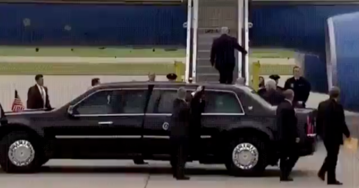 The less than dignifying incident happened as Trump boarded the presidential plane to fly to Rochester, Minnesota where he delivered a speech, in which he hailed his Supreme Court nominee Brett Kavanaugh as an “incredible person” and slammed Democrats for trying to sabotage his character after American professor Christine Blasey Ford accused him of sexual assault.