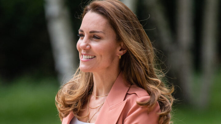 While we’re used to seeing Catherine, Duchess of Cambridge, step out in beautiful frocks and elegant coats, the mother-of-three has proven that she can dress casually and make it just as fashionable — and photo worthy. The 39-year-old perfected the smart-casual look on Tuesday, as she stepped out in a dusty rose jacket and classic blue ‘mom’ jeans. She coordinated the outfit with a pair of white Veja sneakers, and wore her hair out in soft waves.