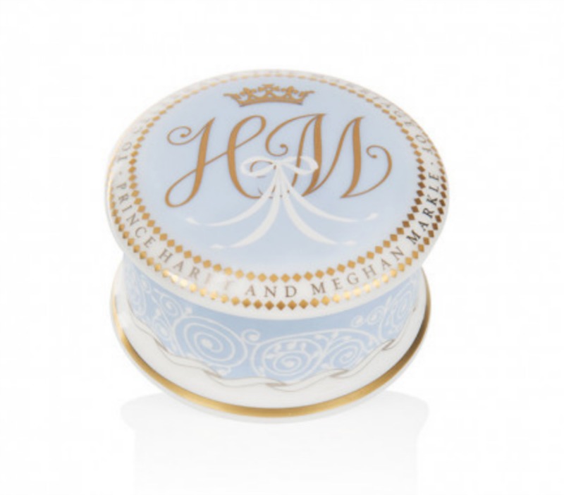The gorgeous collection consists of a plate, a pillbox and three mugs, each one intricately decorated in an exclusive design that shows a monogram surmounted by the coronet of Prince Harry, and tied together with white ribbons.