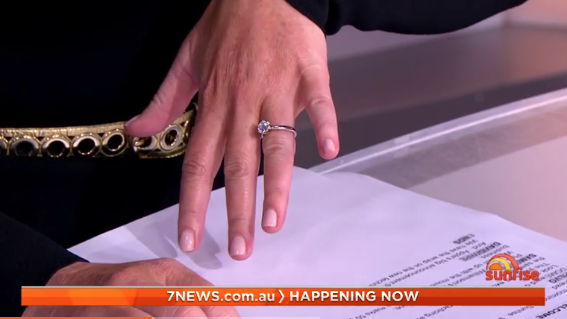 Sunrise presenter Samantha Armytage announced her engagement to Richard Lavender on Sunday, and now the 43-year-old journalist has shown off her stunning diamond ring. Returning to work on the Channel Seven show on Tuesday, Sam said she is “really, really happy” with her husband-to-be.