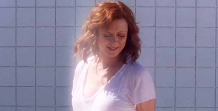 70-year-old Sarandon appears at one point in the video dancing around in a low-cut white t-shirt and blue jeans.