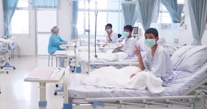 WATCH: Thai boys look to be in good spirits in hospital, in first video released after their rescue from #ThamLuang cave complex (📹: APTN) https://t.co/iZWeHzhJ8o pic.twitter.com/OlM5vQvp41